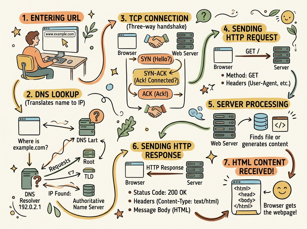 - **Elements**: Wavy connection lines, abstract concept icons, color fills not fully filling outlines (hand-painted feel), rounded shapes, sketchy arrows, doodle decorations