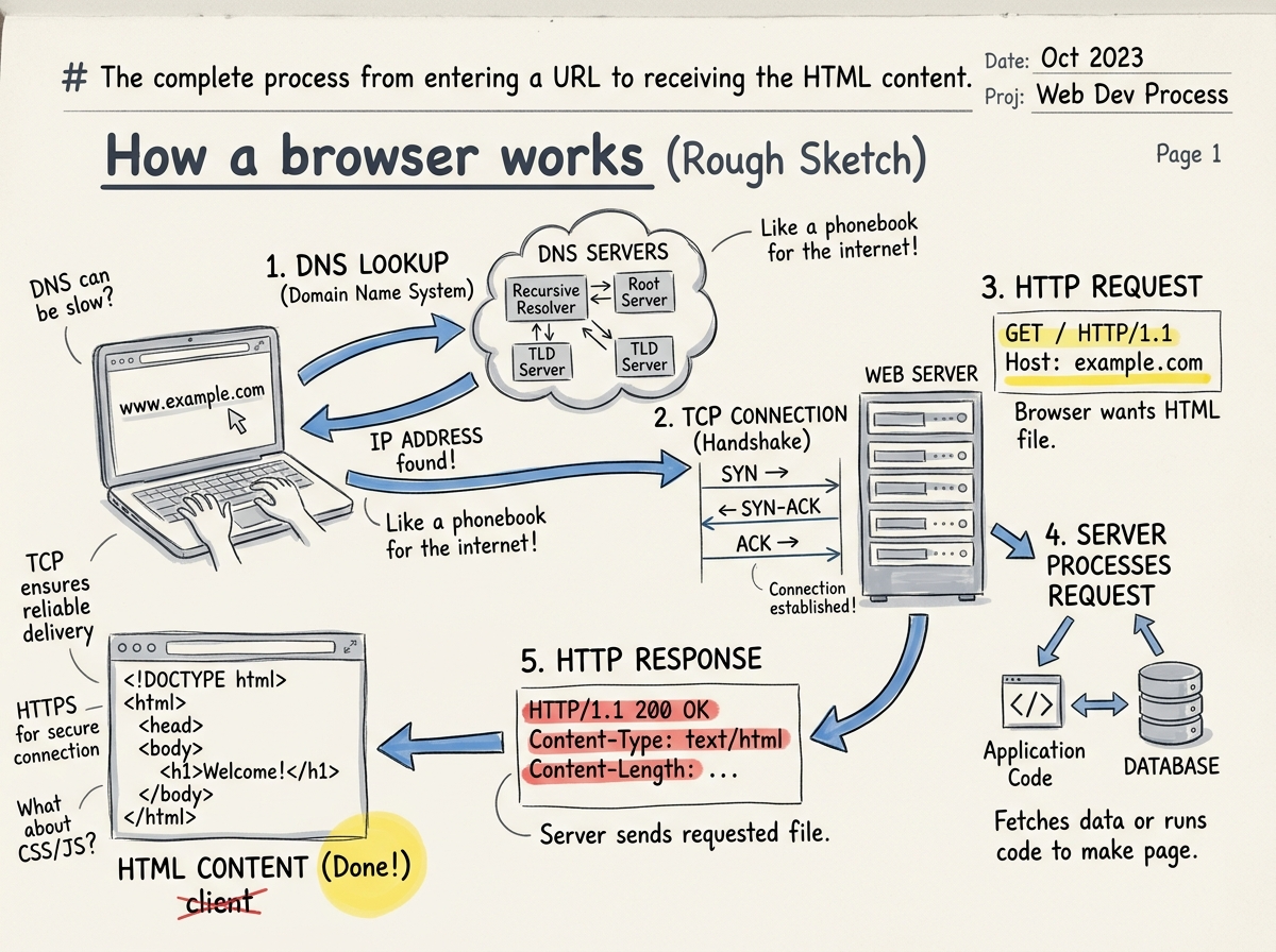 - **Elements**: Rough sketch lines, arrows, handwritten labels, crossed-out marks, underlines, margin notes, simple diagrams