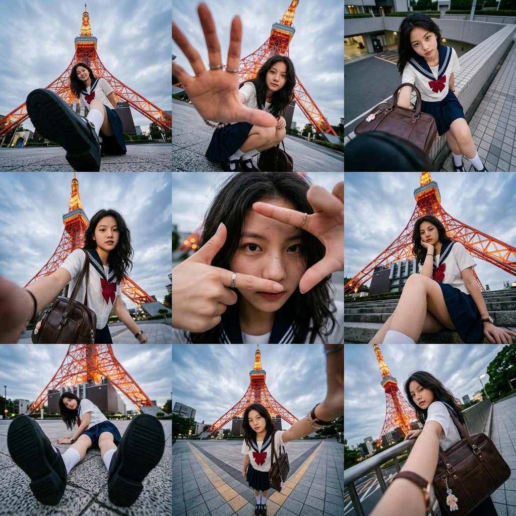 Dynamic Tokyo Tower Fashion Shoot with Extreme Angles - AI Image Edit Gallery | Edit0
