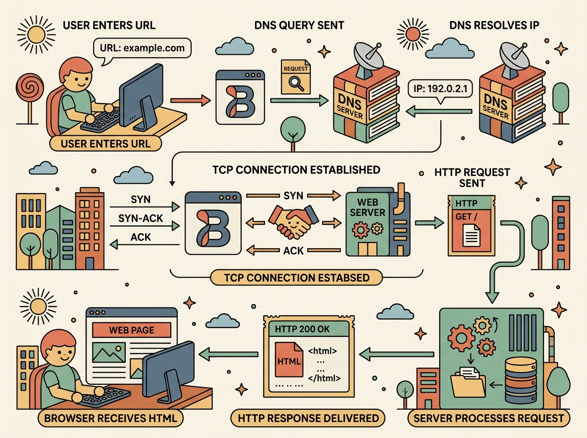 Flat vector illustration style with clear black outlines and retro soft colors.